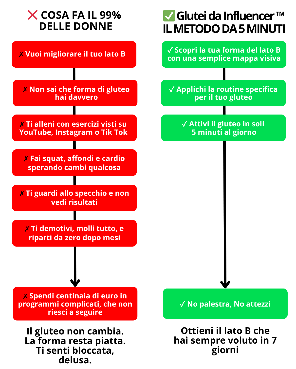 ➤ Esatto. Perché nessuno ti ha mai insegnato come allenare il tuo tipo di gluteo. Non sei tu il problema: è il metodo sbagliato